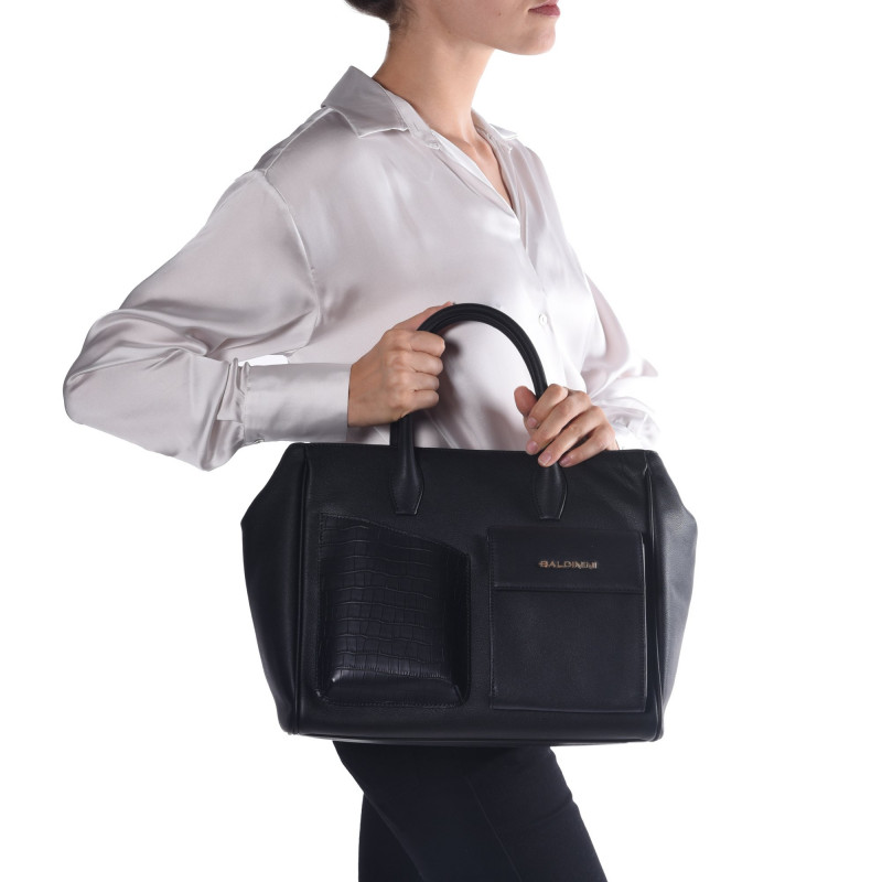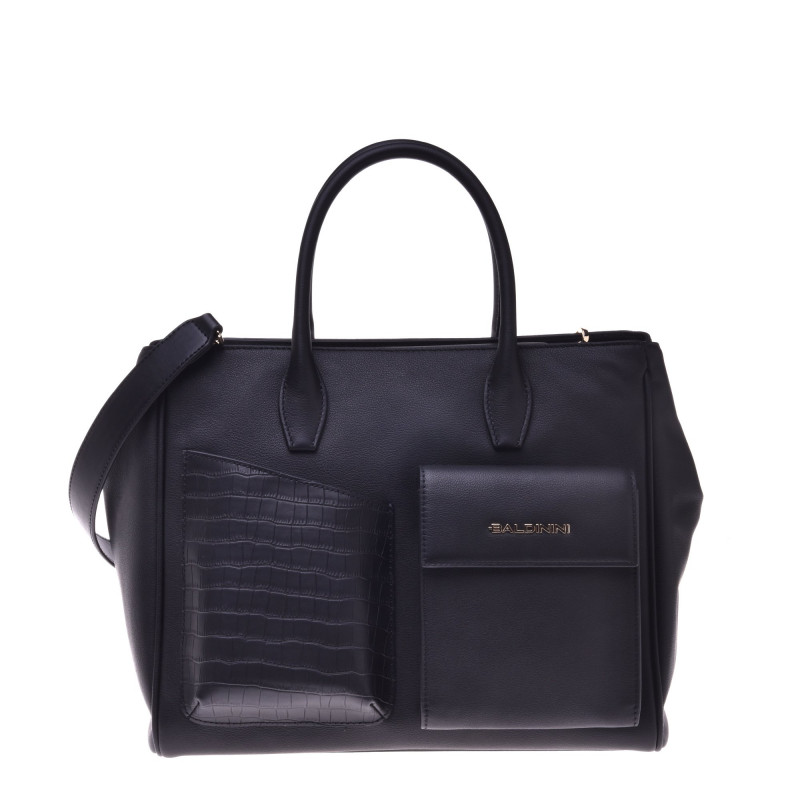 Provedení: Přírodní kůžeOzdoby: Zlatý kovBarva: ČernáZamykání komory: MagnetPočet komor: 1Rozměry: 32 x 27 x 18 cmJiné: Odepinací dlouhý popruhBaldinini, vyrobeno v Itálii.