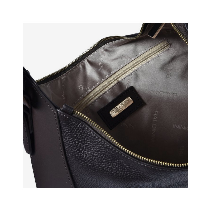 Provedení: kůžeOzdoby: zlatý kovBarva: hnědáUvnitř: přihrádka na zip a úložná přihrádkaZapínání: na zipRozměry: 39.5 x 40 x 4 cmJiné: kovový monogram B ve zlatém tónuBaldinini, vyrobeno v Itálii.