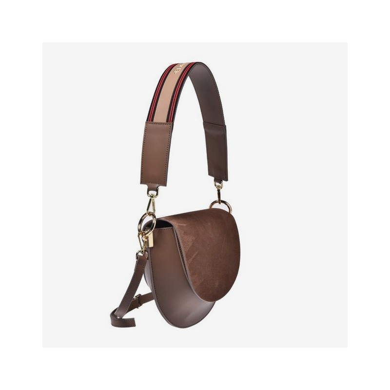 Provedení: kůže/semišBarva: hnědáUvnitř: 2 úložné přihrádkyZapínání: zapínání na magnet Rozměry: 29 x 21.5 x 8 cmJiné: odnímatelné ucho, nastavitelný a odnímatelný kožený crossbody popruhBaldinini, vyrobeno v Itálii.