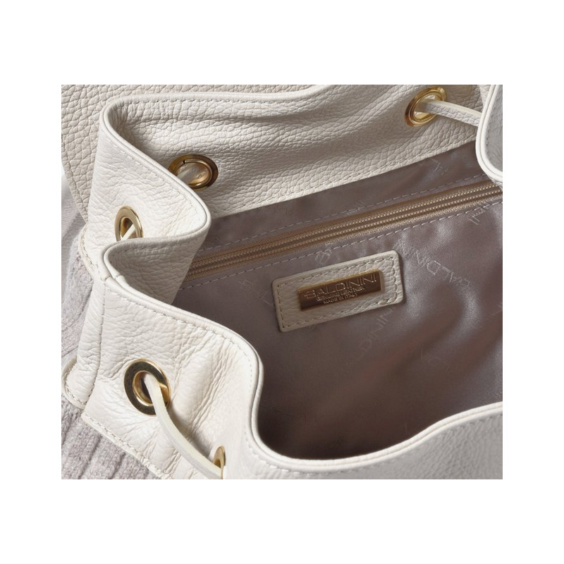 Provedení: kůže/textilBarva: vanillaUvnitř: 2 úložné přihrádky a 1 přihrádka na zipZapínání: stahovací šňůrka a magnetické zapínání se zlatým kovovým monogramem BRozměry: 38x16x30 cmJiné: přední přihrádka na zipBaldinini, vyrobeno v Itálii.