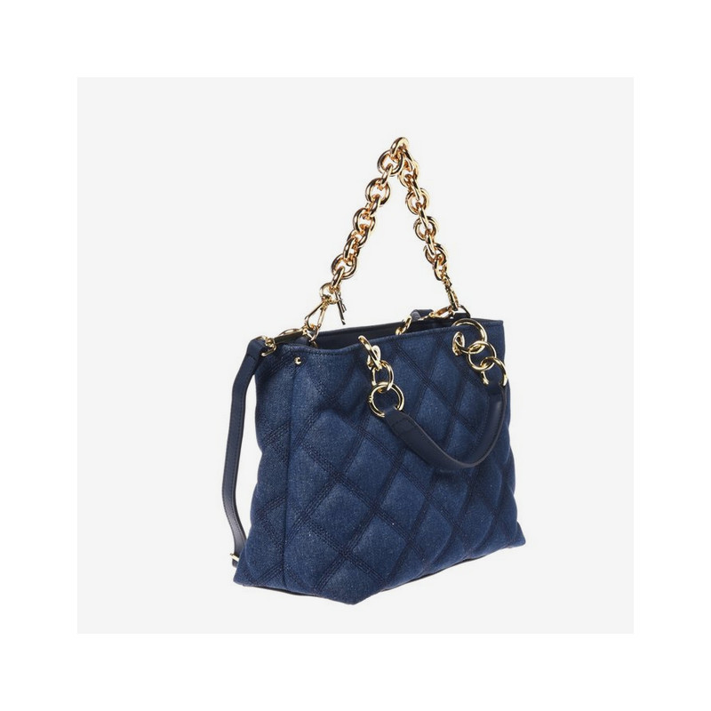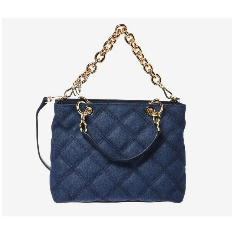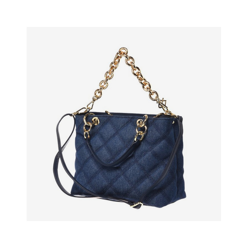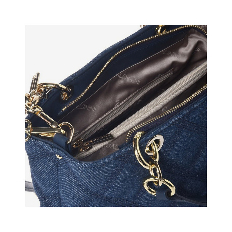 Provedení: Kůže/textilOzdoby: Stříbrný kovBarva: ModráUvnitř: 2 přihrádky na zipRozměry: 28.5 x 21 x 12 cmJiné: Nastavitelný a odnímatelný kožený crossbody popruhBaldinini, vyrobeno v Itálii.
