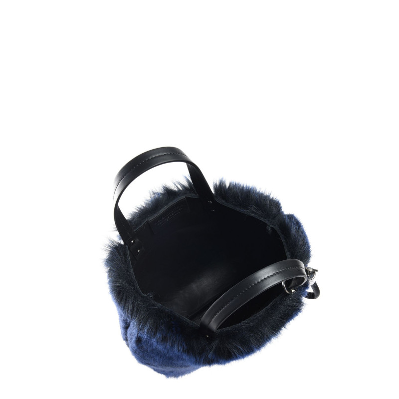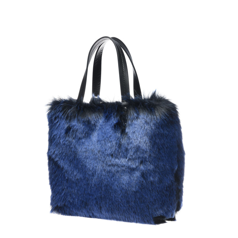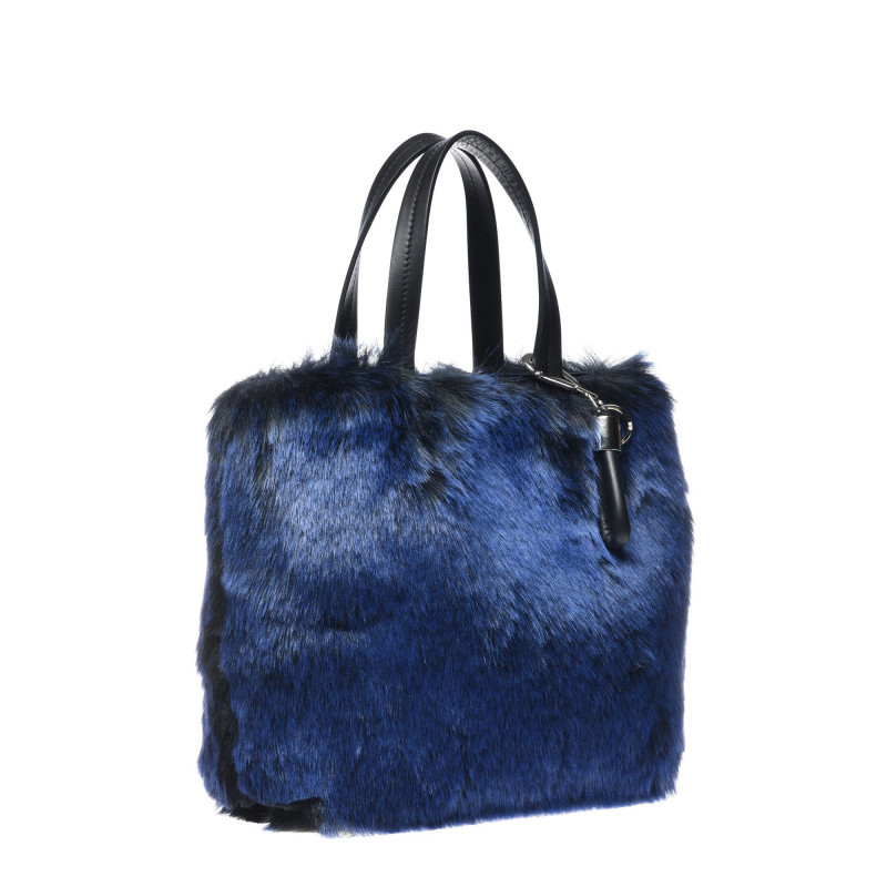 Modrá kožešinová kabelka, magnetické upevnění, velikost 33x27x13 cm.Baldinini, vyrobeno v Itálii