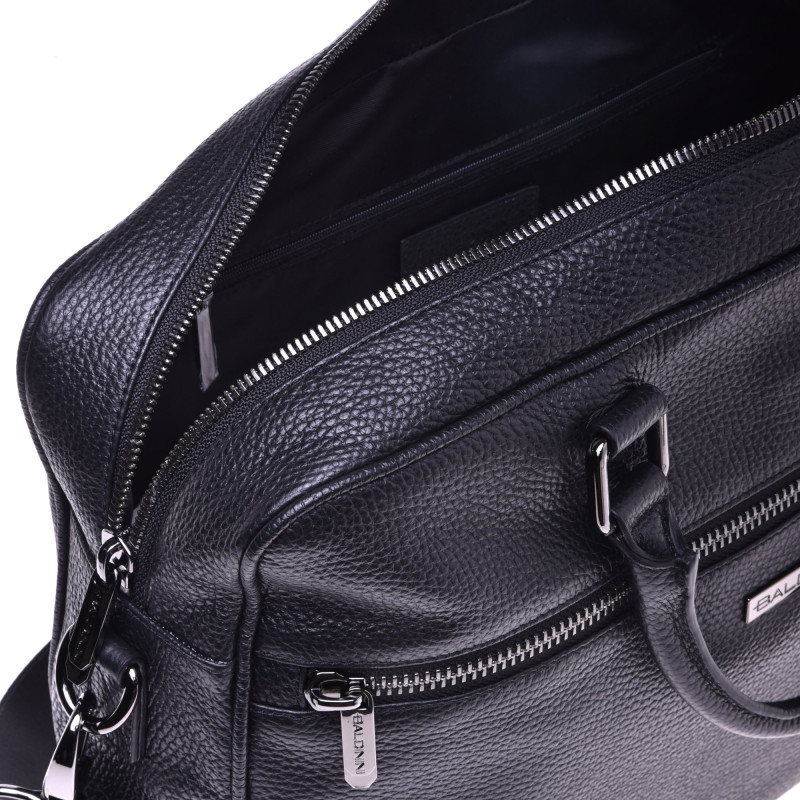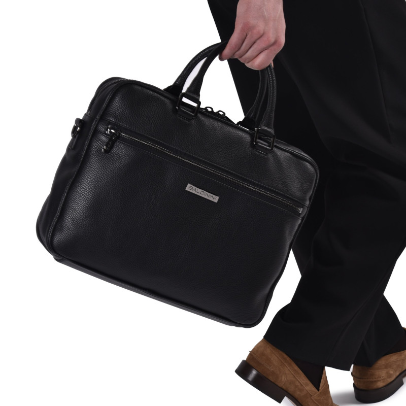Provedení: kůžeBarva: černáZamykání komory: zipPočet komor: 1Jiné: nastavitelný a odepínací látkový popruh přes tělo, kapsa na zipRozměry: 40,5 x 31 x 11cmBaldinini, vyrobeno v Itálii.