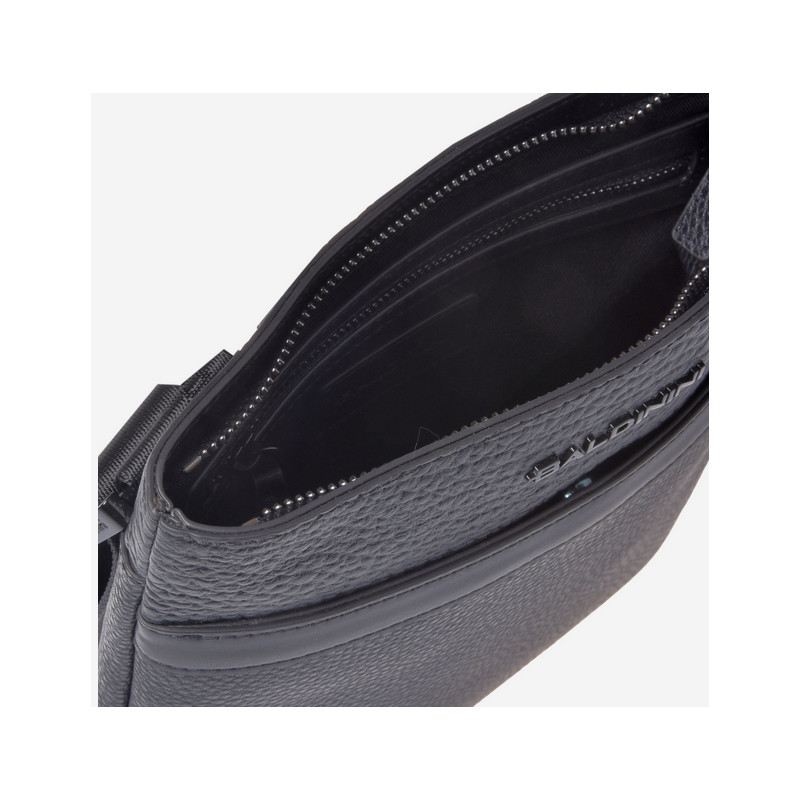 Provedení: kůžeBarva: černáZamykání komory: zip/přední přihrádka s magnetickým zapínáním Počet komor: 1Jiné: nasatvitelný popruh, kapsa na zipRozměry: 21 x 24 x 3,5cmBaldinini, vyrobeno v Itálii.