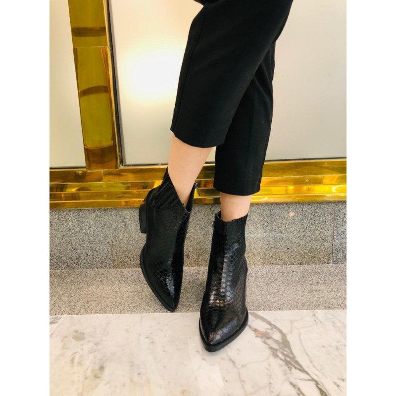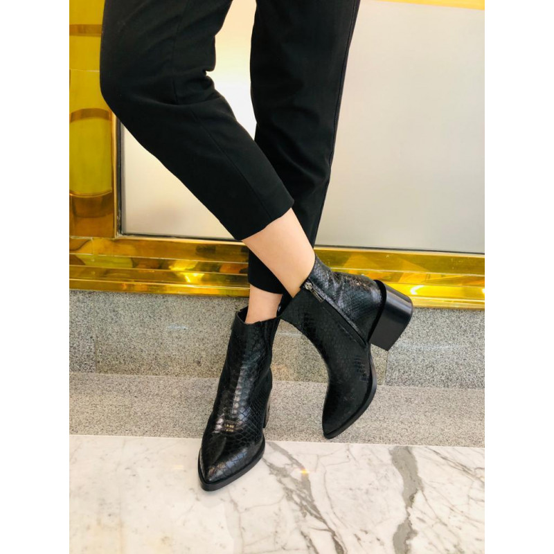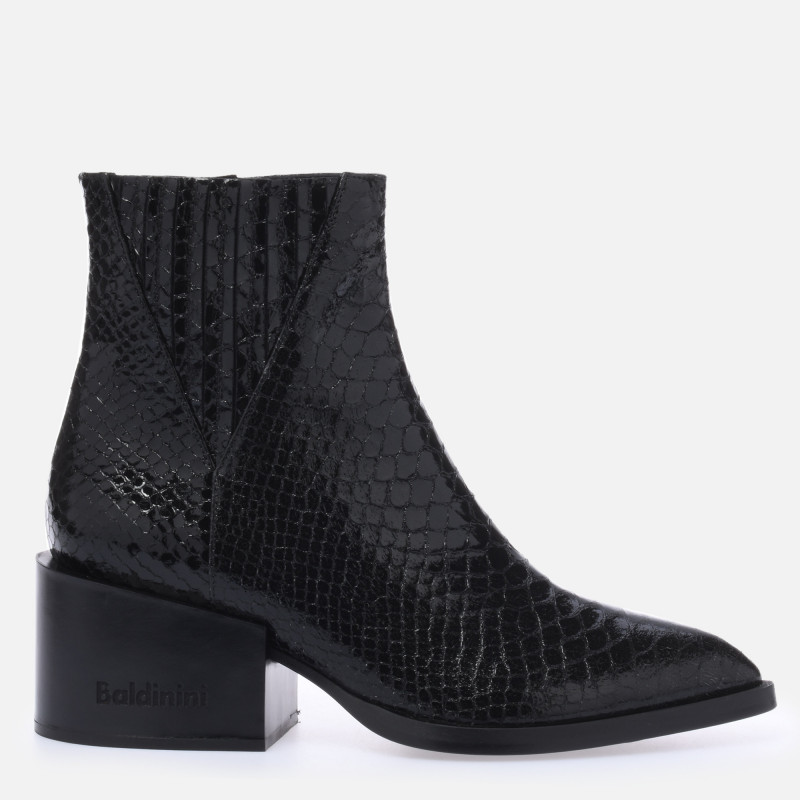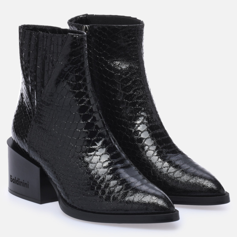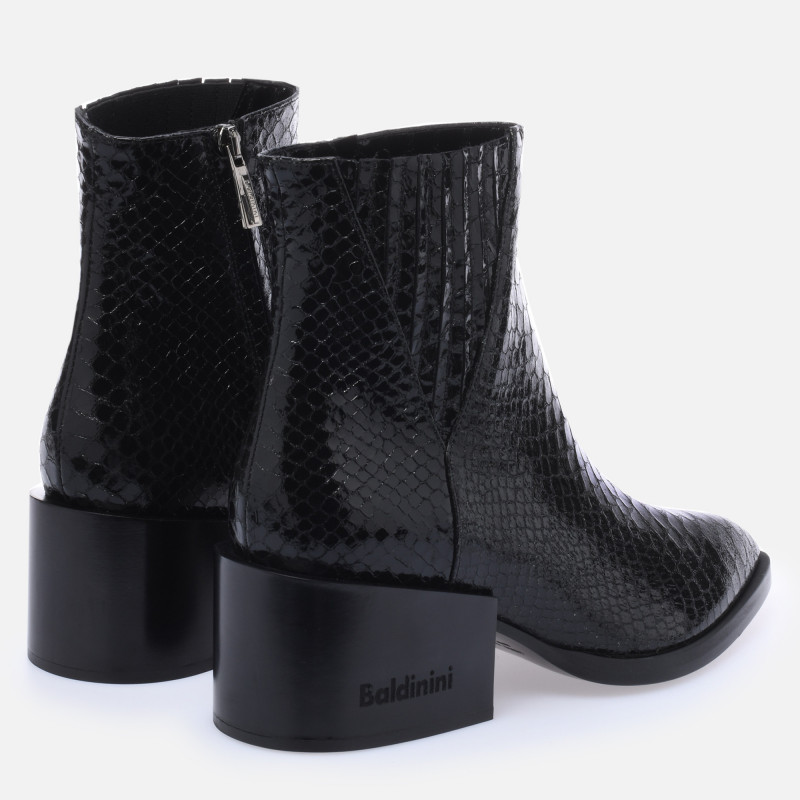 Kotníkové kožené boty, hadí vzor. Barva černá. Podpatek 5cm.Baldinini, vyrobeno v Itálii