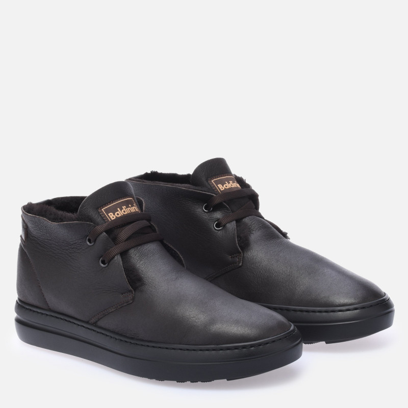 Pánské boty na zavazování z jehněčí kůže. Barva - tmavě hnědá. Uvnitř zateplené jehněčím kožíškem. Gumová podrážka.Baldinini, vyrobeno v Itálii
