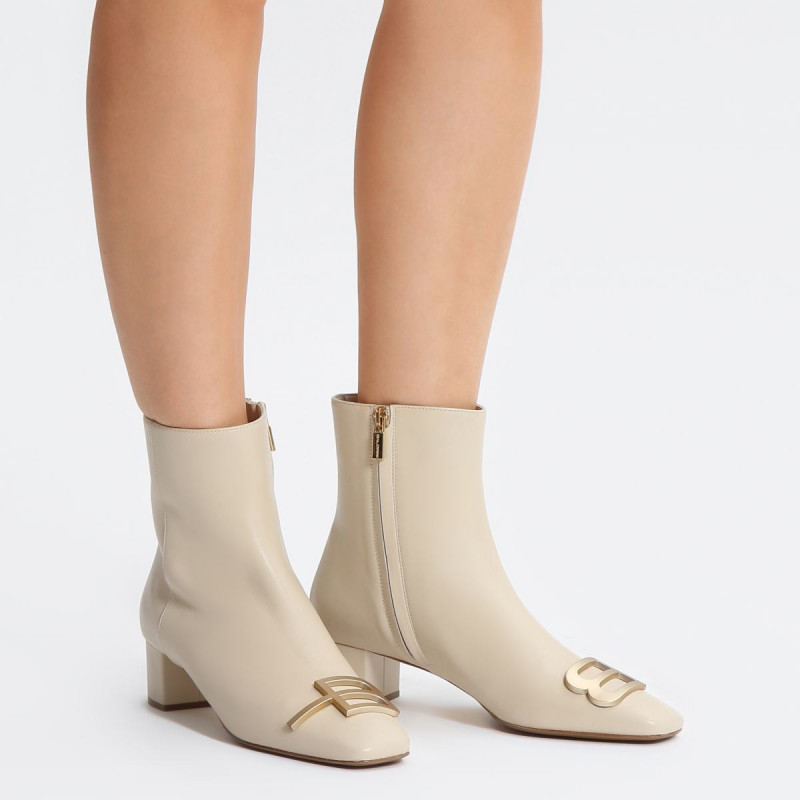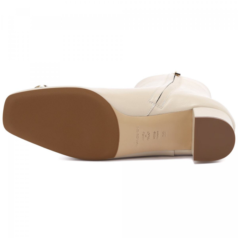 Svršek: Přírodní kůže Vnitřek: Kůže Podrážka: Guma Barva: Krémová Zapínání: Zip Výška podpatku: 3,5cm Baldinini, vyrobeno v Itálii.