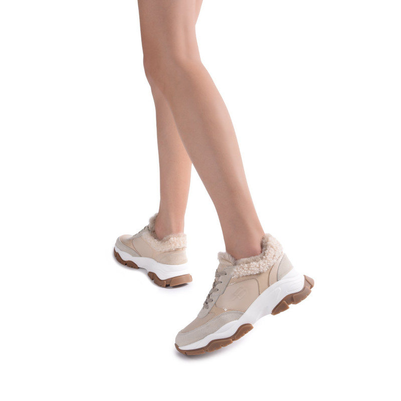 Svršek: Přírodní kůže/semiš/lakVnitřek: Jehněčí kožíšekPodrážka: GumaBarva: KrémováZapínání: Šněrovací Tloušťka podrážky: 2,5/4 cmBaldinini, vyrobeno v Itálii.