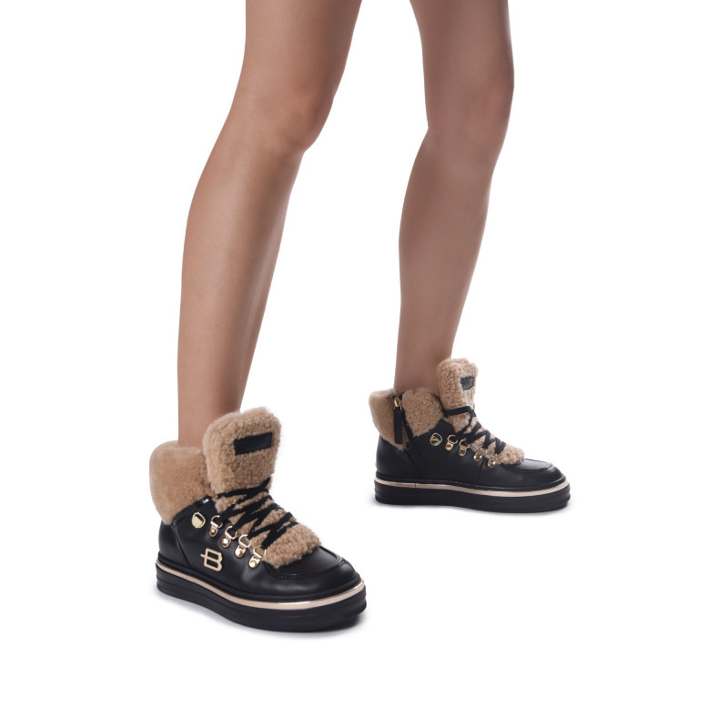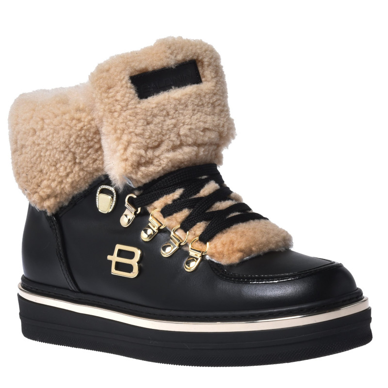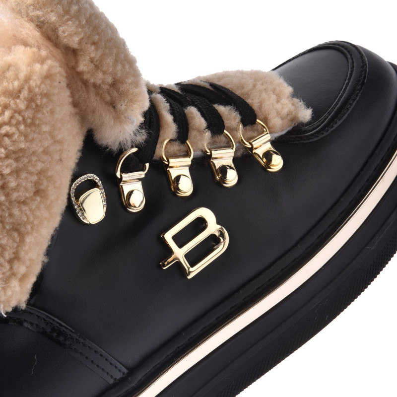 Svršek: Kůže/ovčíná/lakVnitřek: Jehněčí kožíšekPodrážka: GumaBarva: ČernáZapínání: Šněrovací Tloušťka podrážky: 2,5 cmBaldinini, vyrobeno v Itálii.