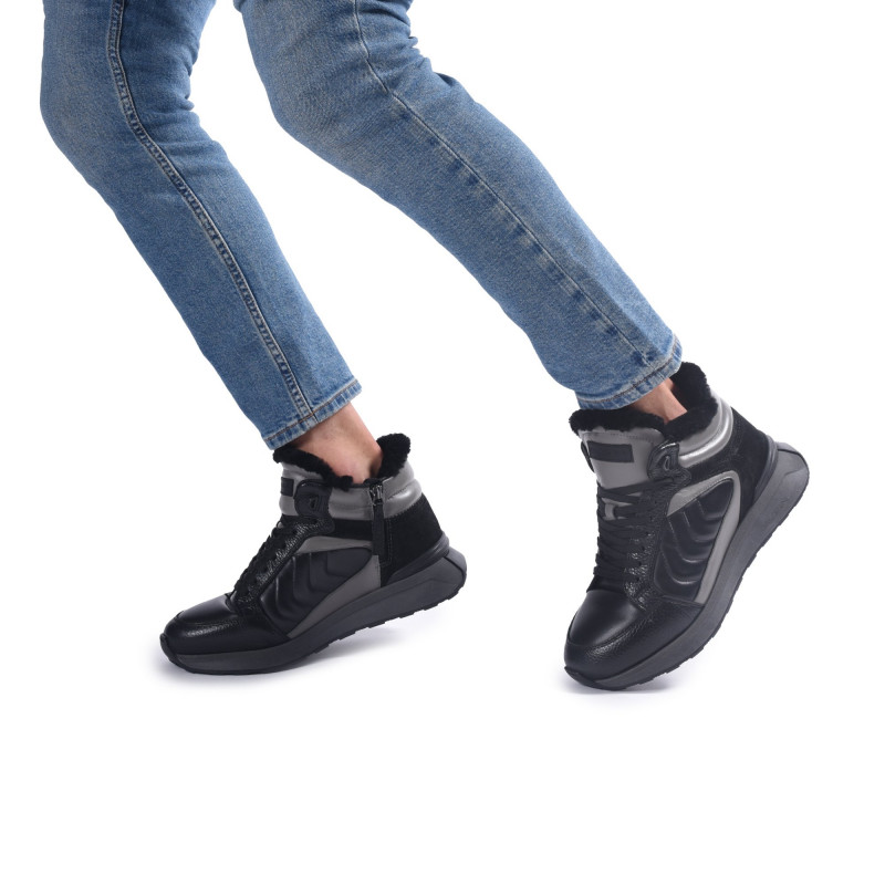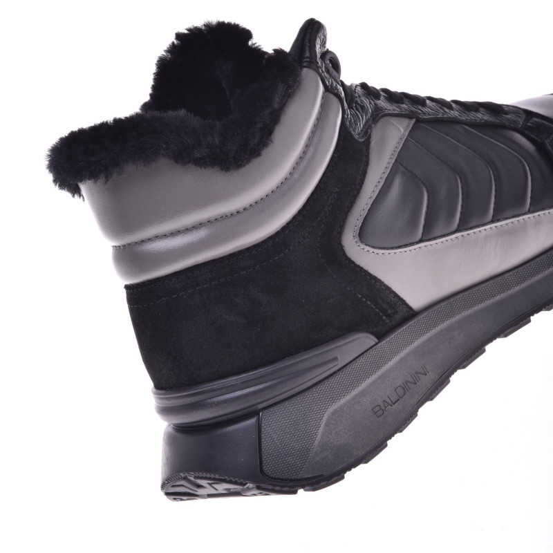 Svršek: Přírodní kůže/nubukVnitřek: KožíšekPodrážka: GumaBarva: Černá/šedáZapínání: Šněrovací/zip Tloušťka podrážky: 1,5/3cmBaldinini, vyrobeno v Itálii.