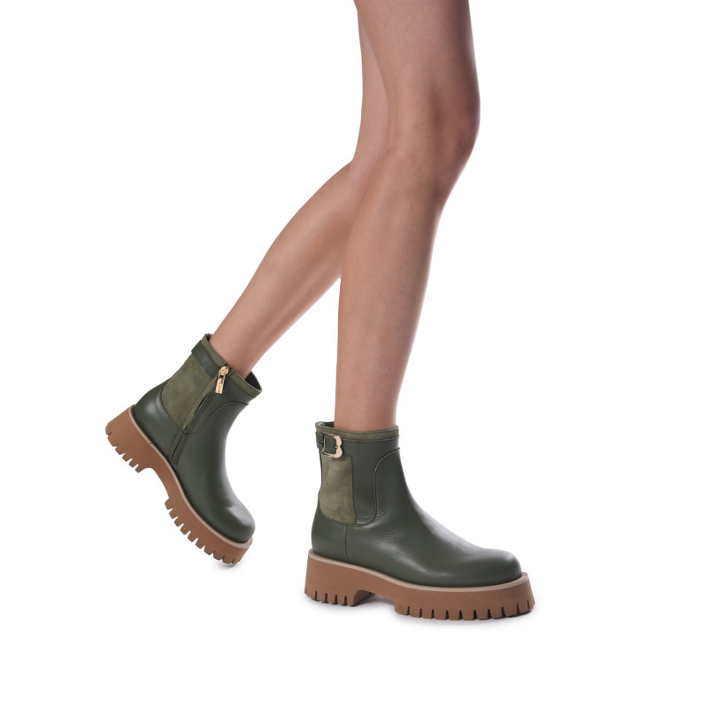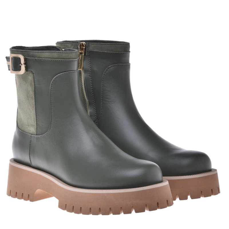 Svršek: Kůže/semišVnitřek: KůžePodrážka: GumaBarva: ZelenáZapínání: Zip Tloušťka podrážky: 2,5cmVýška podpatku: 4,5cmBaldinini, vyrobeno v Itálii.
