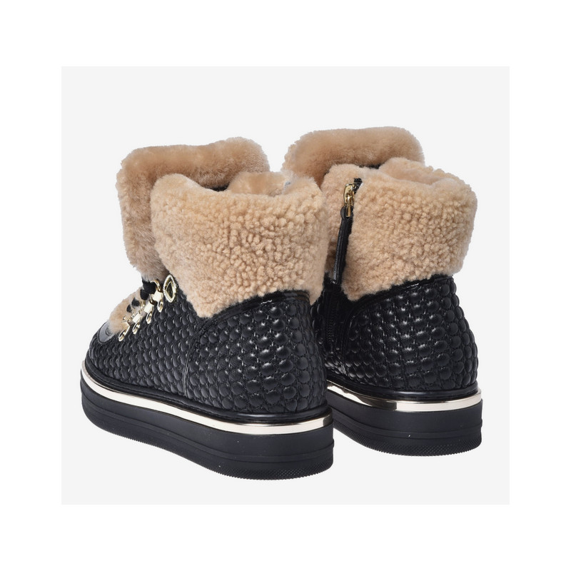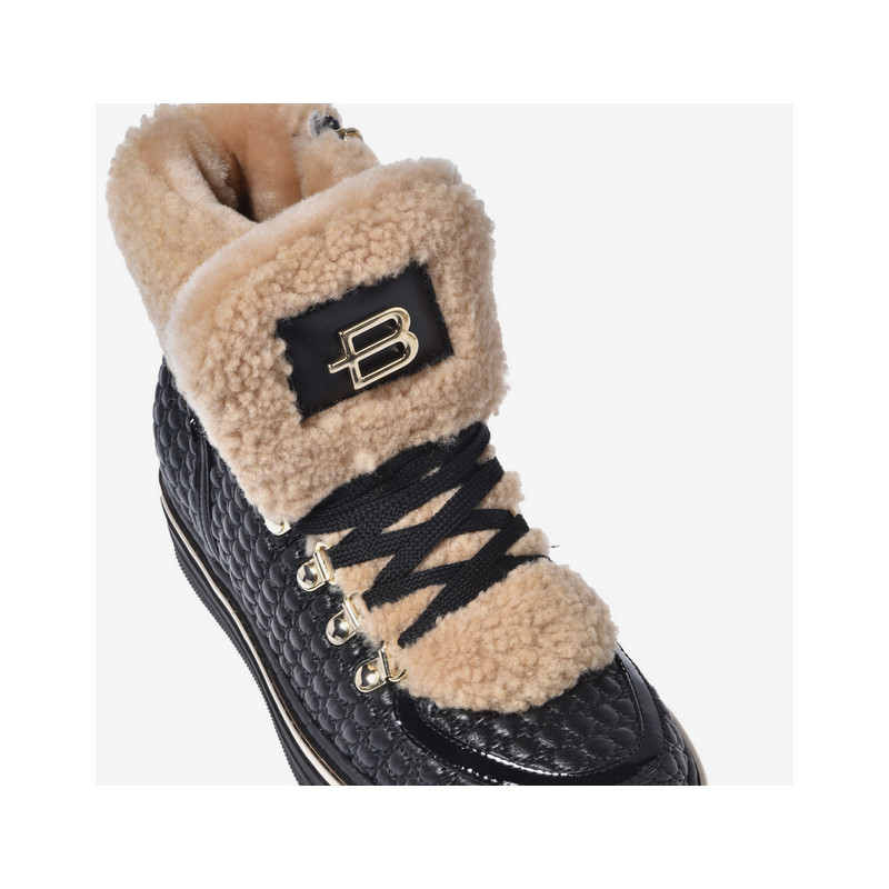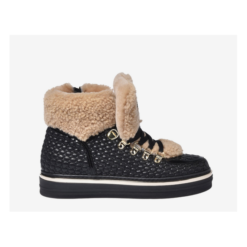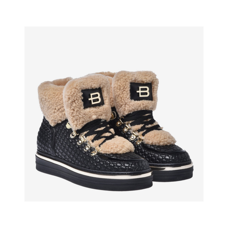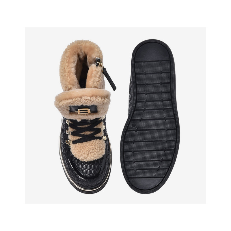 Svršek: Ekokůže/ovčínáVnitřek: Jehněčí kožíšekPodrážka: GumaBarva: ČernáZapínání: Šněrovací Tloušťka podrážky: 2,5 cmBaldinini, vyrobeno v Itálii.