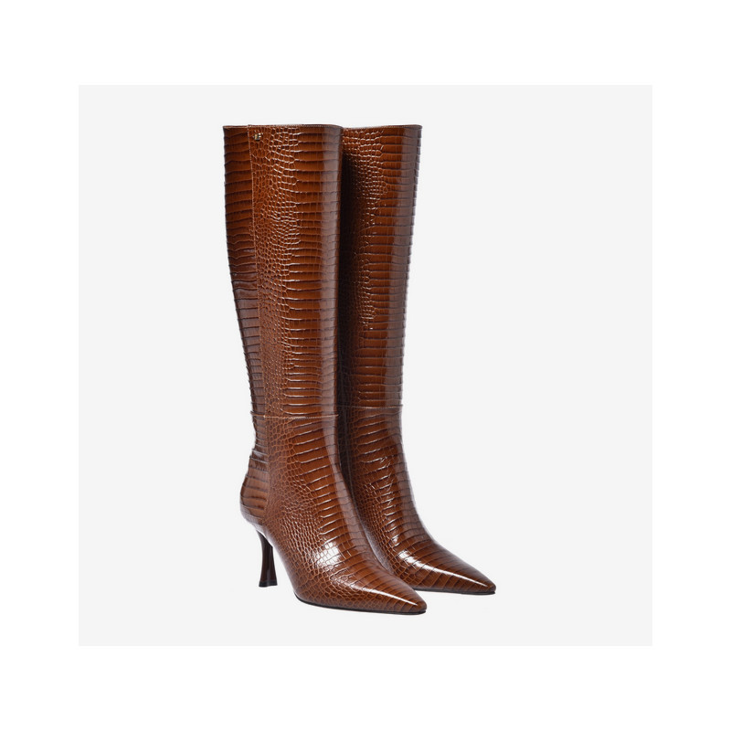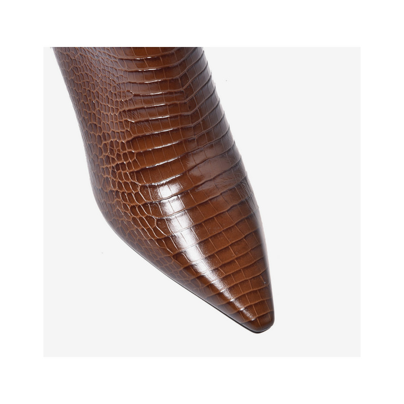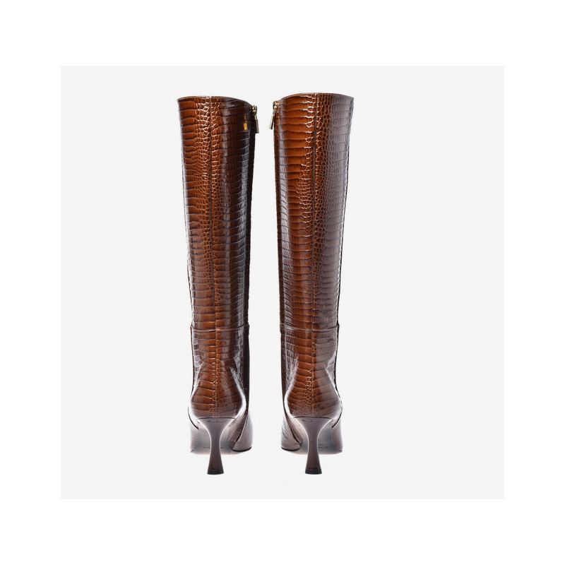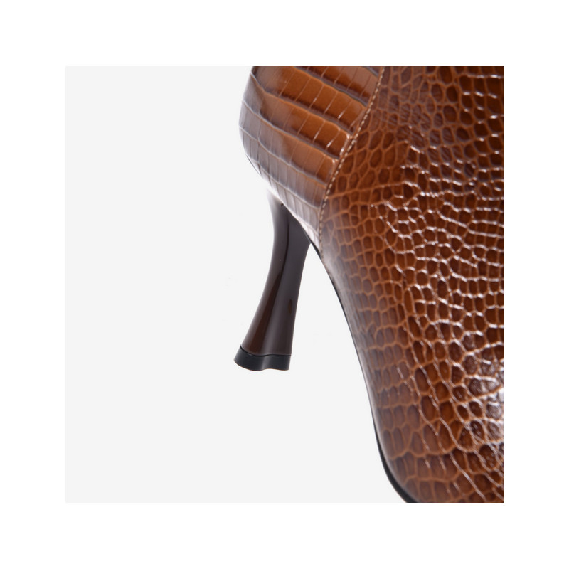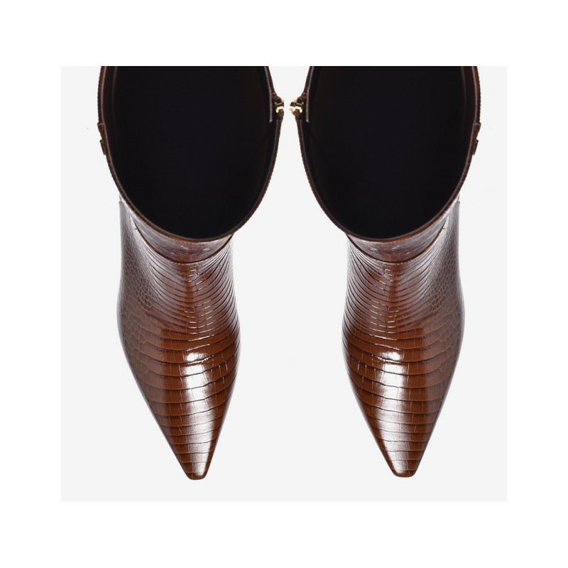 Svršek: Kůže s krokodýlím vzoremVnitřek: KůžePodrážka: GumaBarva: Hnědá Zapínání: ZipVýška podpatku: 7cmBaldinini, vyrobeno v Itálii.